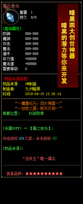 【游戏介绍】我们承诺游戏内任何物品均可爆出、不出售元宝外任何数据。
