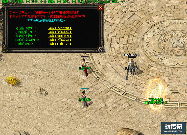 每个大陆都有世界BOSS,本大陆最高爆率!另外还增加了内功技能和连击,具体在土城酒馆查看。