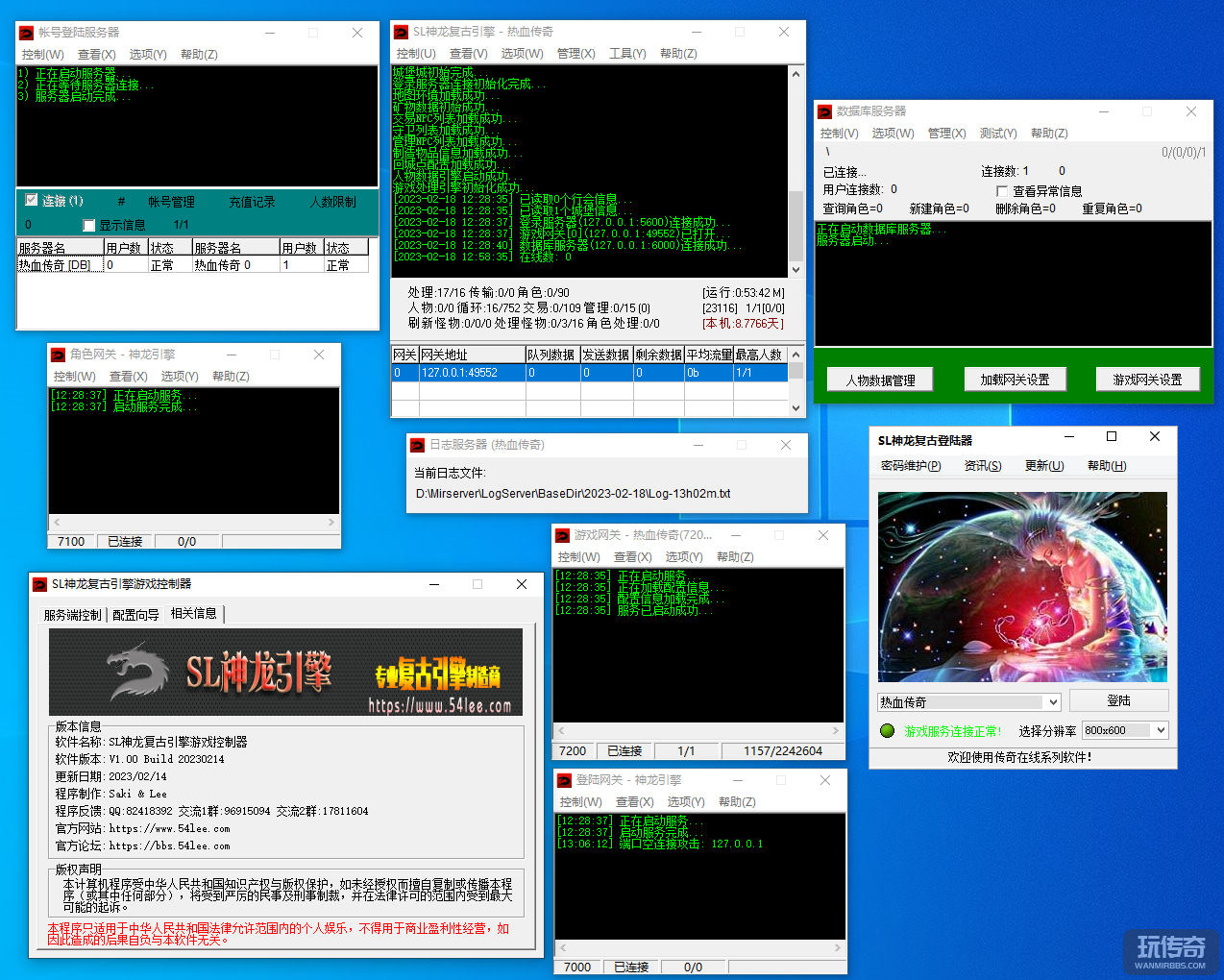 4.等待跳出网页提示WEB服务启动成功,复制 SL神龙复古单机测试登陆器.exe 到客户端目录 打开即可登陆游戏