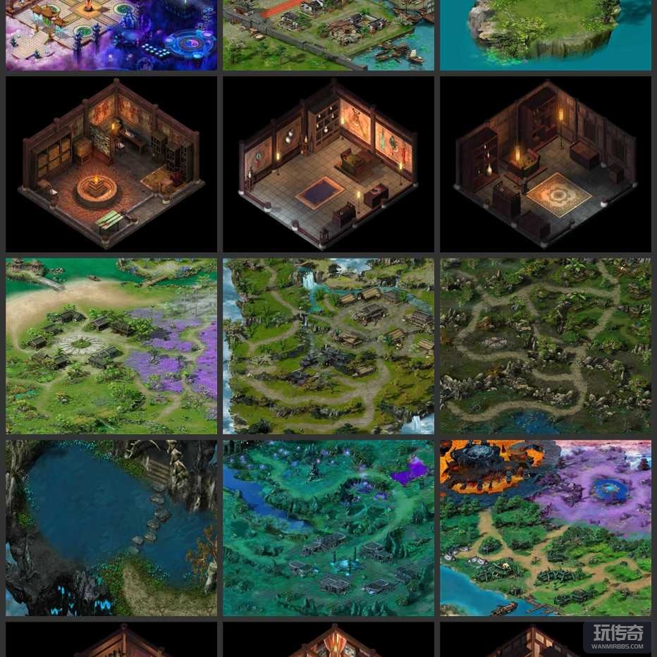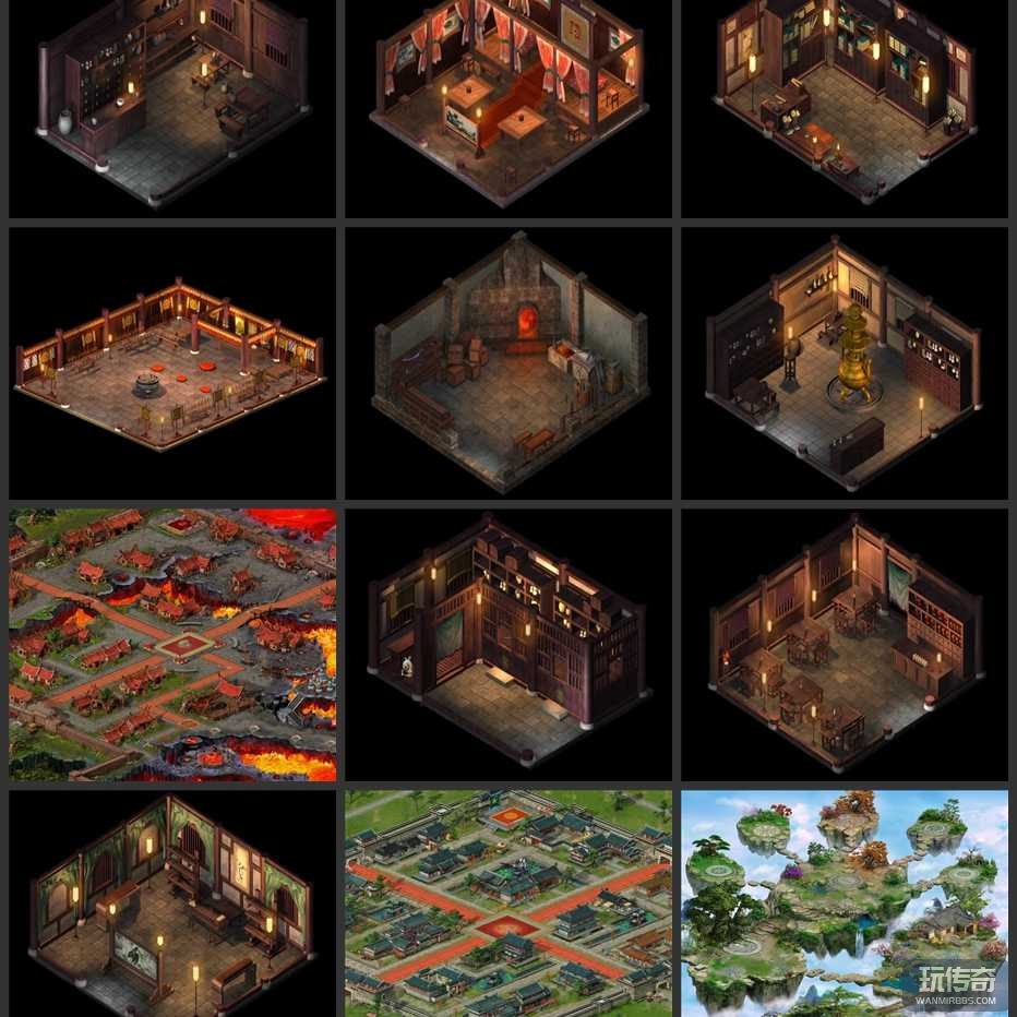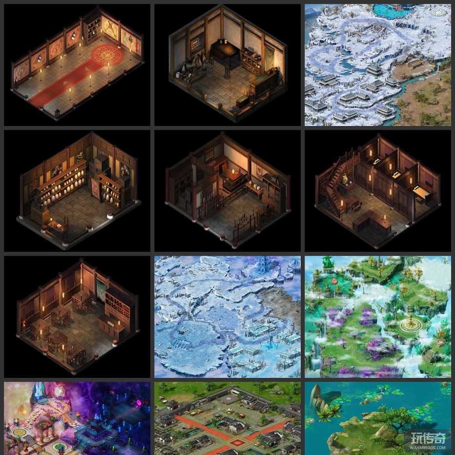 地图为了展示方便,都做了统一大小长方框,实图为大小高低不一的原画。