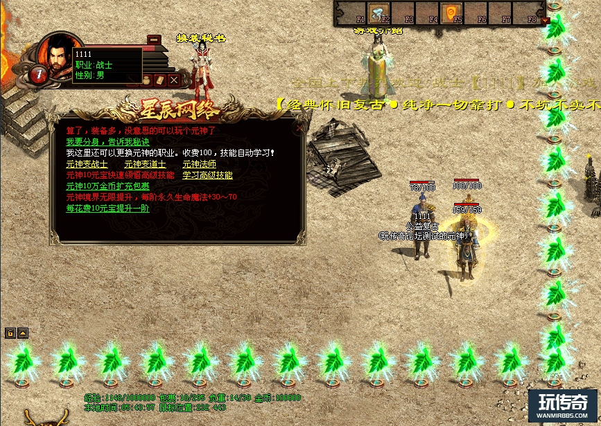 3、增加了元神境界,可以用元宝无限提升,每次增加血量和魔法,主要是玩道士带战士,提升下元神打怪,吸血+高血量打的爽。