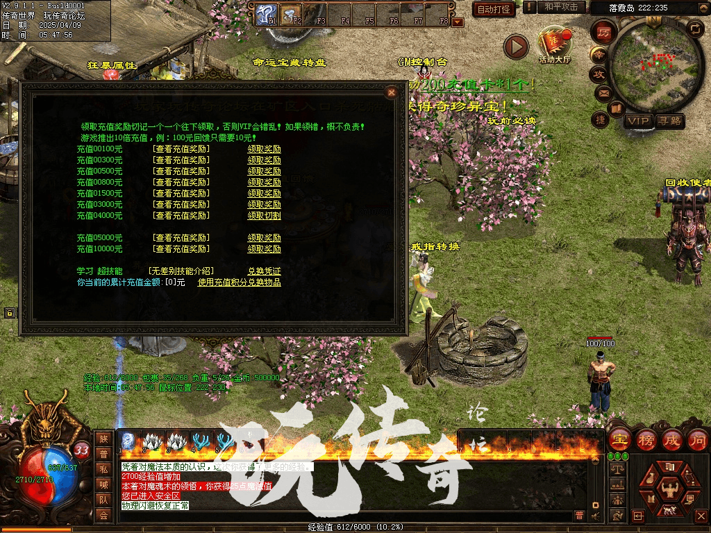 注意:每个地图最后一层都有黄色BOSS,爆充值点 元宝用于合成装备,充值点可以去落霞领取回馈