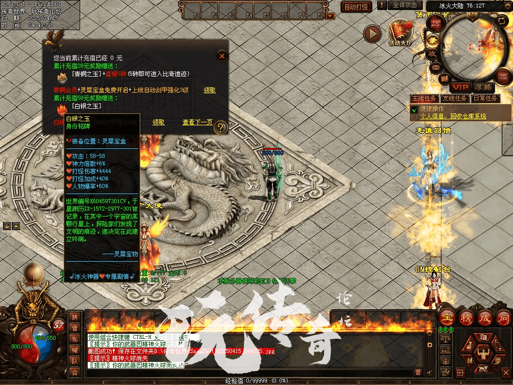 等前期专属追够了就可以慢慢进冰火皇城或次元之城.冰火之城开始的BOSS会有一点点难度.但是爆率也提高了很多!