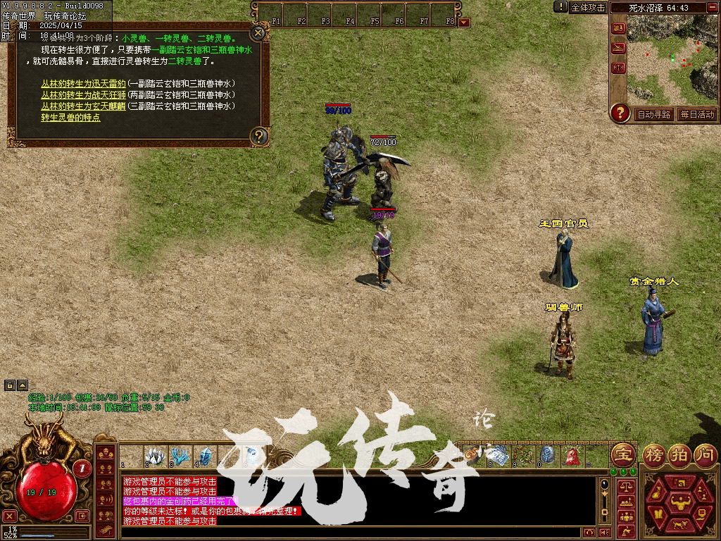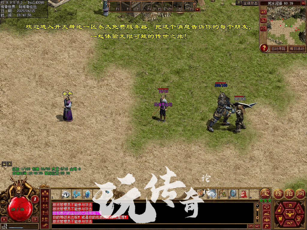 6.重新进入游戏可以顺利进行游戏 ,GM不能进行打怪 需要退出GM模式才能打怪,如果退出后还想进入GM模式需要小退。