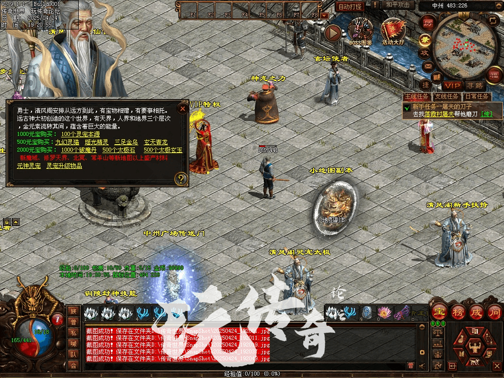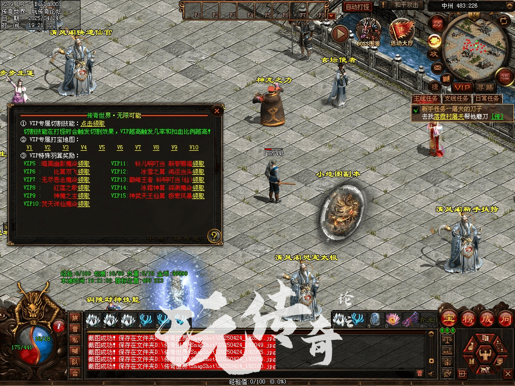 11:新增经典、时光区、灵枪时装系统,新增怪物爆率透视功能,更新套装技能道士召唤碧血魔,完善虎王和龙王脚本和物品。