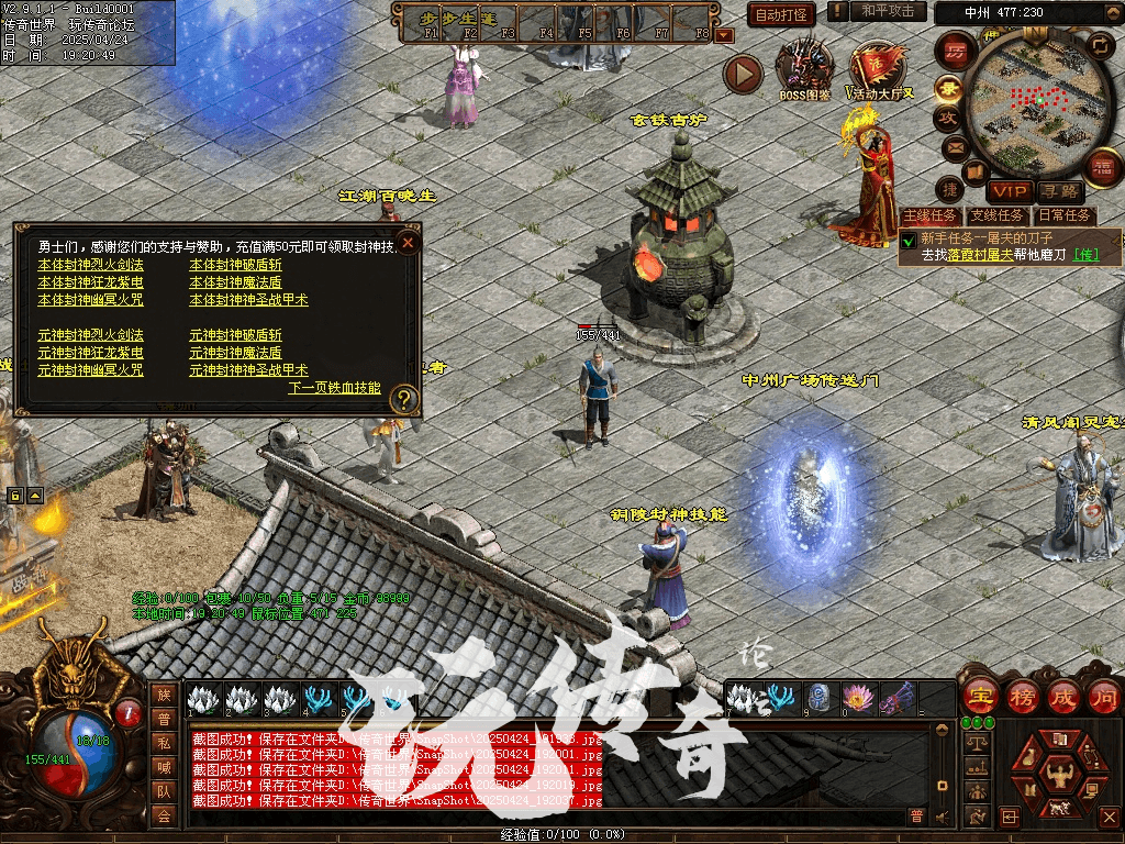 24.3.19更新:添加神兔、圣龙两套宝石面具勋章灵佩神佑装备,相关NPC处已更新,增加一个玄铁古炉活动NPC