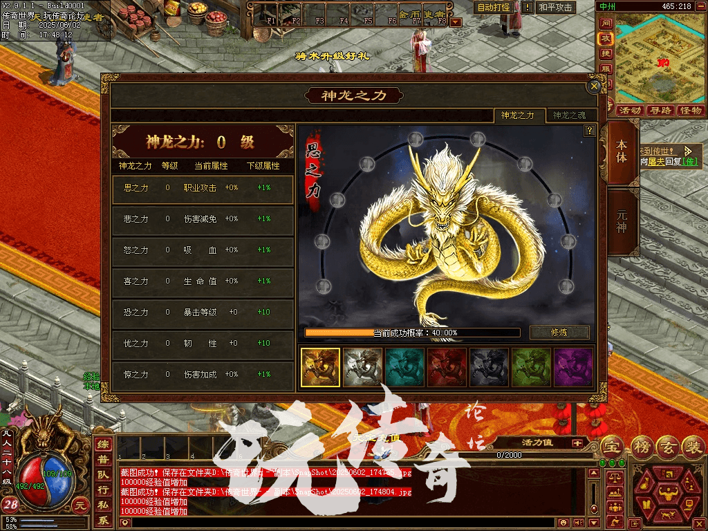 (1)神龙之力:在碧空城NPC升级。