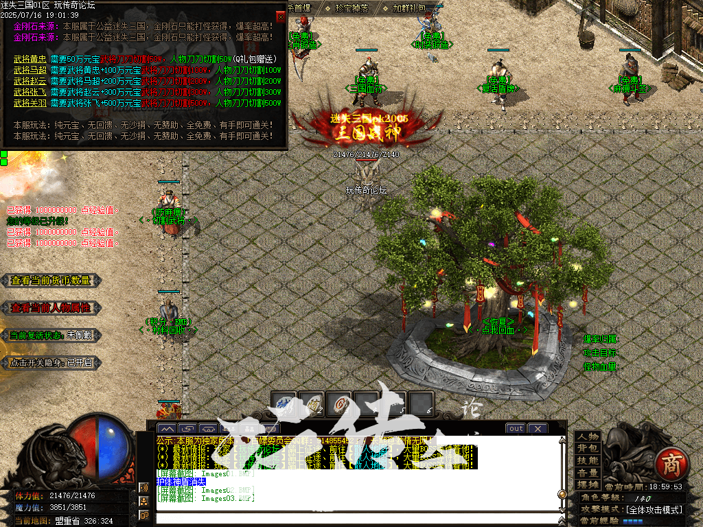 3. 积累一定元宝和金刚石 - 土城NPC合成 - 血符 - 祝福 - 斗笠 - 盾牌 - 时装 - 生肖 - 武将。可一键多项一起操作(速度一定要快)