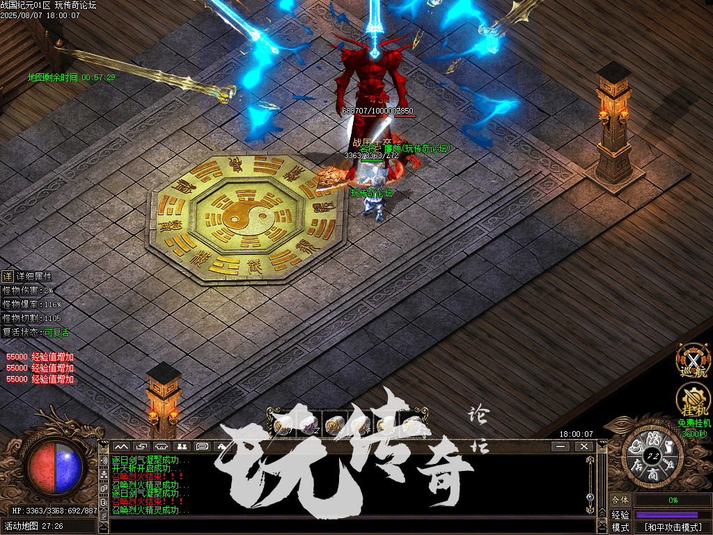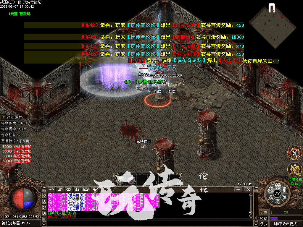 乾坤领域 一层有2只灰色怪物几十只红色怪物,二层也有2只灰色怪物20只左右红色怪物。