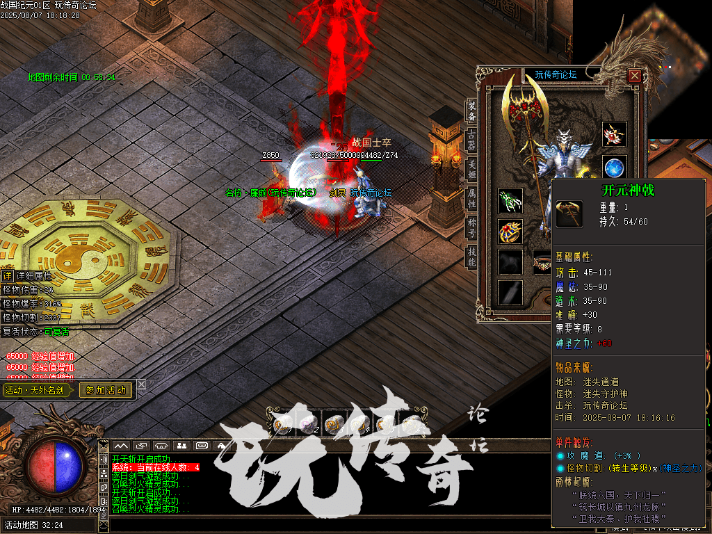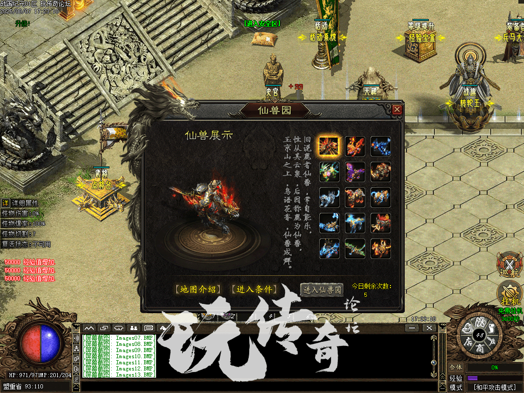 地图NPC进入地图打红怪和灰怪获取古器材料,辅以元宝解封和升级古器。