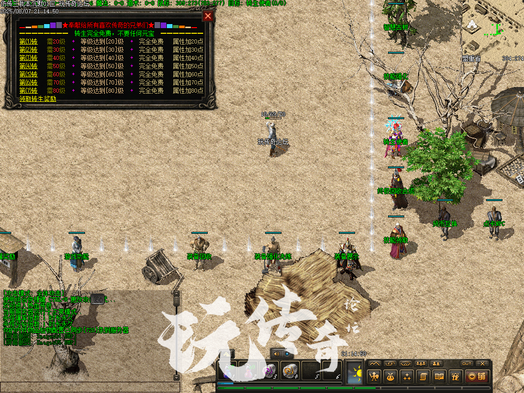 6)20级后每升10级都可以通过NPC转生获得属性点和天赋点,属性点可自选属性添加,天赋点可在NPC激活天赋属性或技能。3-5-7转还可领取转生装备奖励,非常实用。