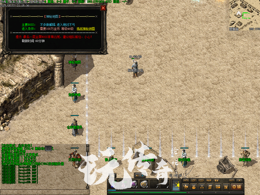 提示:只有秒传送到BOSS房间收费元宝,防止死亡跑图捡不到装备,要不除非老板请跑图(这才是传奇的乐趣),商城有定位石,可以定位地图,老板使用起来更方便。