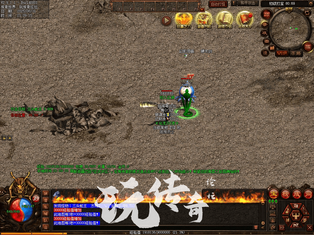 备注:请不要放过任何一只BOSS,哪怕它是一只三头蛇王。回收装备获得神力是这个服的王道。