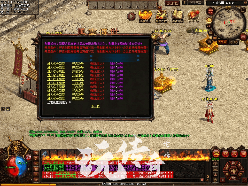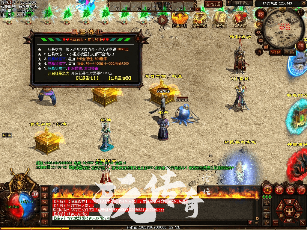 3、开启狂暴之力。可提升自身属性、怪物爆率。同时开启狂暴后,可进入狂暴地图1、2。地图内刷風雲之主,爆全服装备,必打。