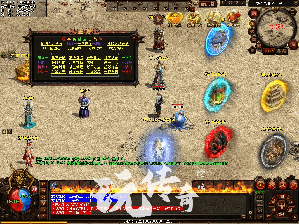 最牛BOSS狂爆(战场、神威地狱底层、落霞奇境)爆屠龙级武器、高级战神级装备。