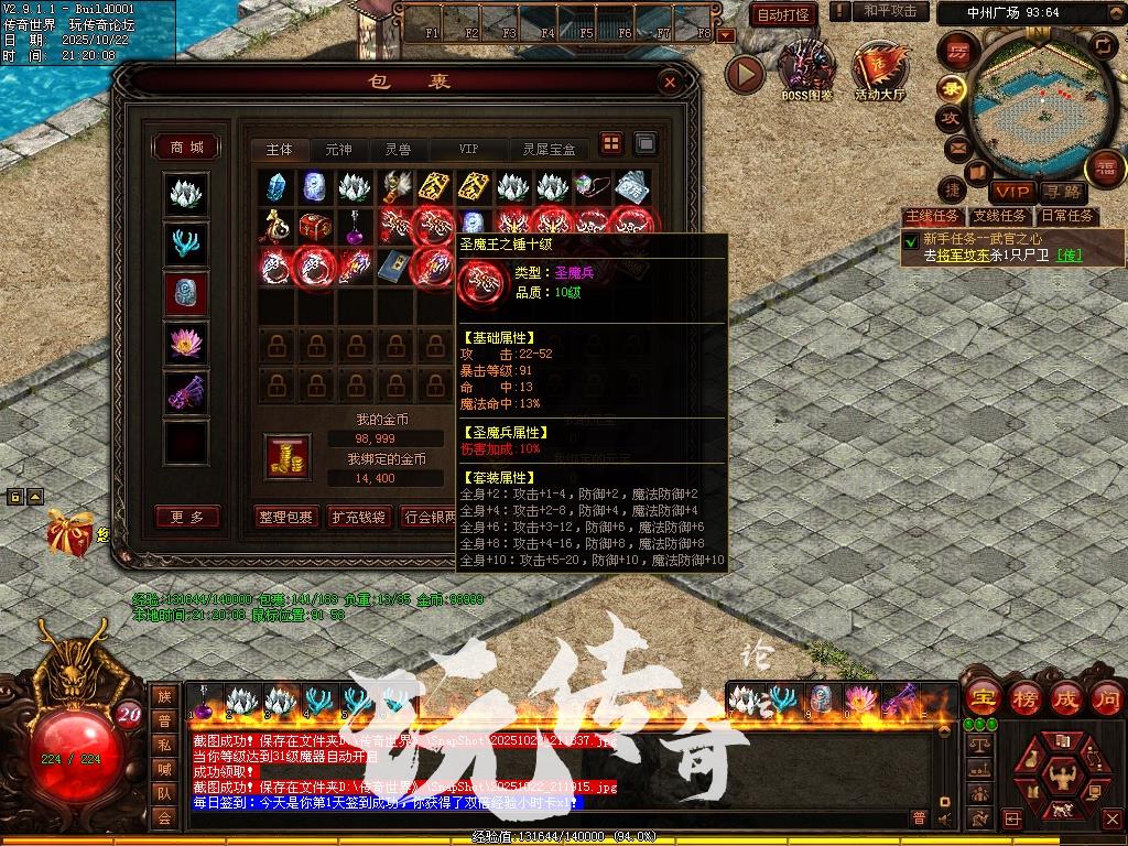 240321更新;因不能批量购买,取消幻域宝藏,物品转移至商城出售,修复商城时装卷轴重复,修复元神魔盾不能升级bug