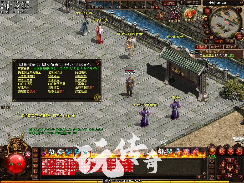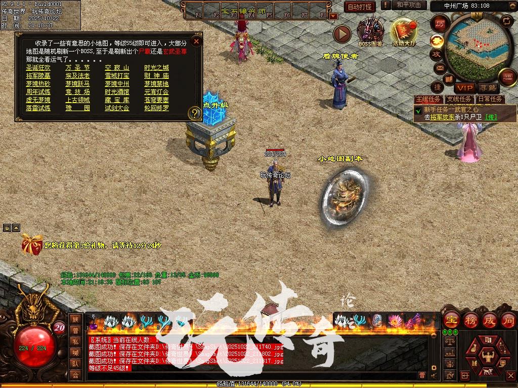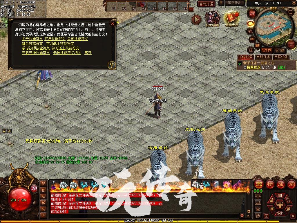 新手上线生存模式:以主线任务为主提升等级获取初级装备地图:凡人宝地,天空之城,幻区域,魔域区域,多情谷,怀旧帝王陵,怀旧拯救公,参加押镖,祈愿树等。挑战模式:提升一定的实力可去挑战高级地图镇妖塔,魔域、地下皇陵、海底、修罗神界北冥魔境、洪荒魔界、混沌妖界、常羊山、不周山、玄武圣域还有专属的军衔地图,天人地图,VIP地图等