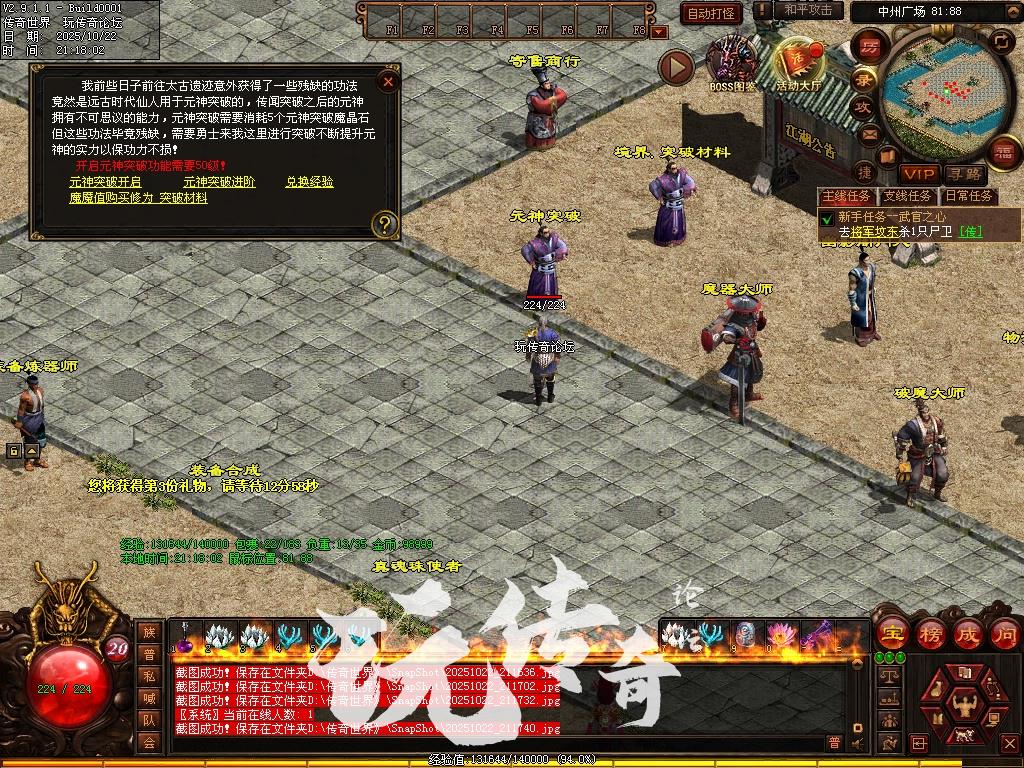 元神突破:元神42级可进行开启突破,MPC在中州广场处,进行相关突破,材料可通过界突破材料商人处购买