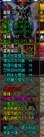 强大装备系统:游戏中有多种高级装备可供选择,包括赤月、贵族、屠龙、贵族剑甲、黄金剑甲、倚天剑甲和主宰等。通过打怪和挑战BOSS,你可以获得各种装备,并进行加星强化,属性越好的极品装备可以提升你的战斗能力。