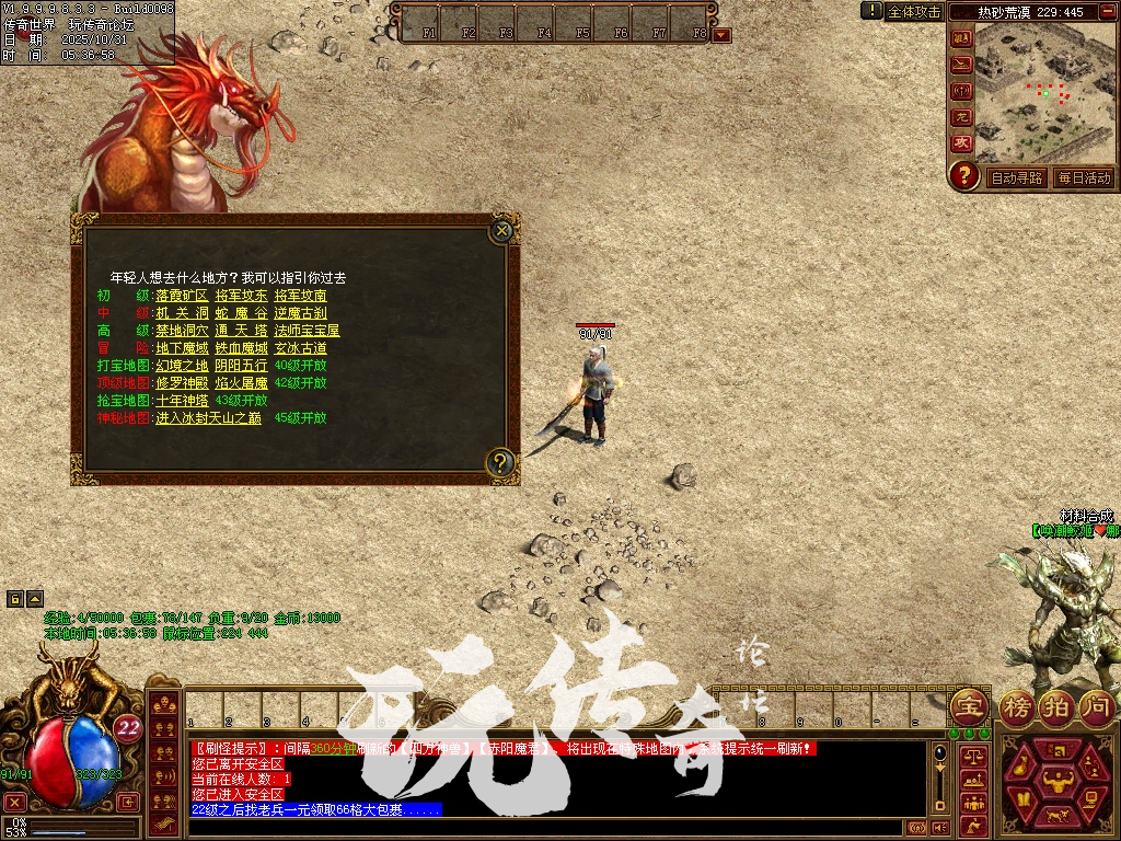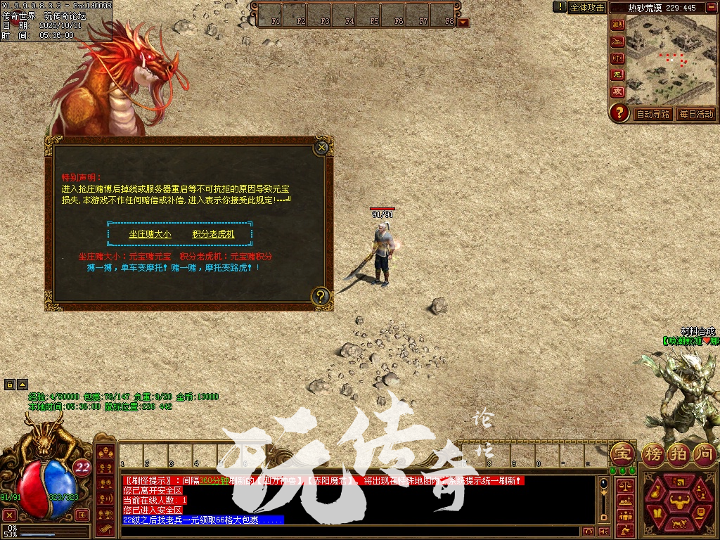 地图全面开放!新手上线设置为土城.玩家可直达炼狱练级,怪物爆出经验宝石直接开启经验轻松简单!