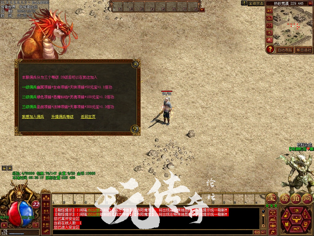 每天18点的活动为幸运杀怪获取装备,不再是单单刷一只怪物能后爆唯一的一件装备!只要你参加:高级装备技能就会是你的!