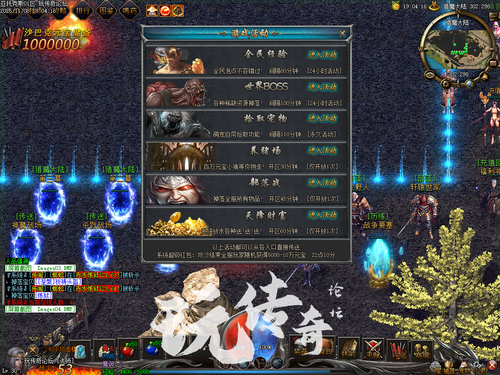活动:战争要塞 全民经验 世界BOSS 拾取宠物 养猪场 部落站 天降财富 建议参加