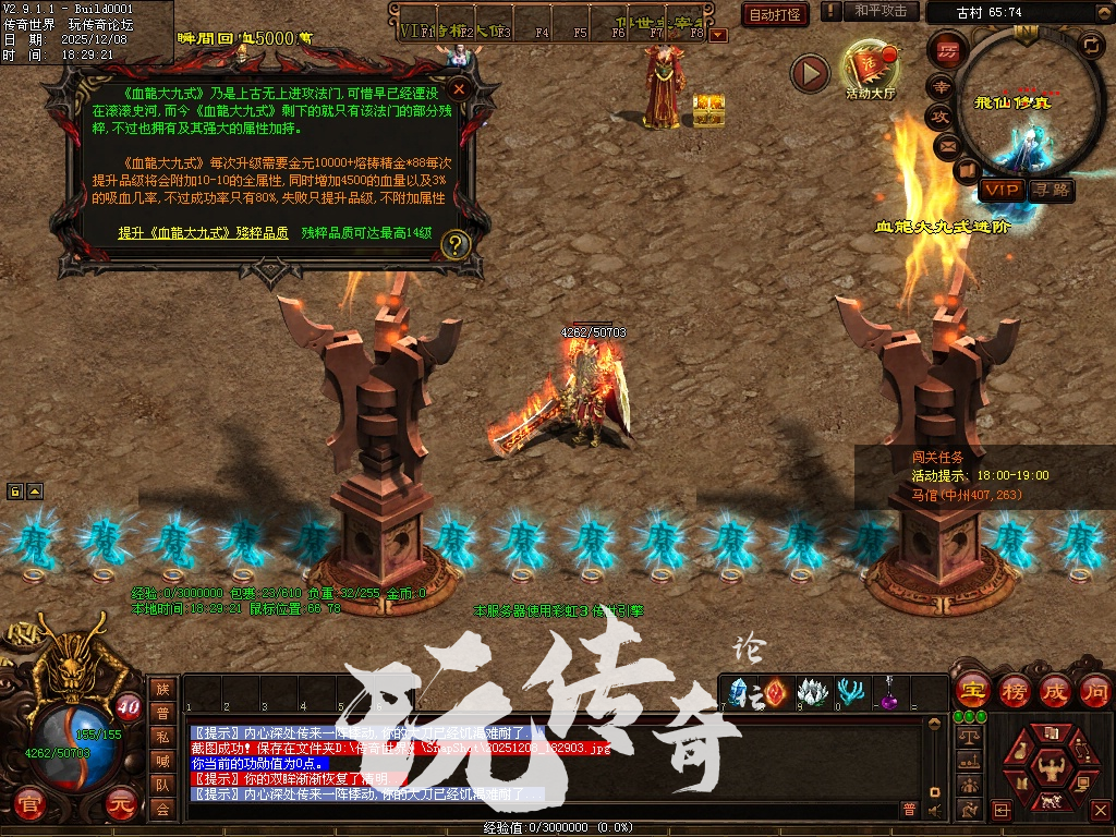 2、游戏附带转生255转、修真境界24个境界、轮回天功60阶、等级255级、