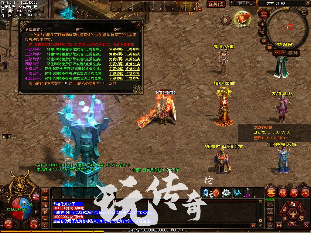 转生附带专属转生打宝地图:5个 1-51 51-102 102-153 204-255 255转以后