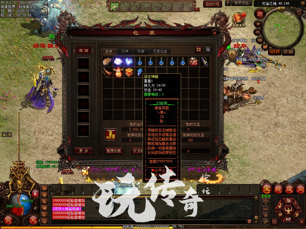 地图每秒增加经验,新手上路先到打金宝地里面打怪发展,怪物会爆出,助战灵魄,幻世币,元宝等材料有用的自己先用方便起步,到达一定级别去等级地图打宝,所有BOSS千万别放过更别灰心打金的玩家打到的材料元宝可以通过寄售平台交易给土豪玩家方便发展!本服简单耐玩只要你会打怪,你就会打金元宝是主要的货币消耗!杜绝一切繁琐的材料,圈钱行为,时间就是一切本服寄售系统完美实现智能化。