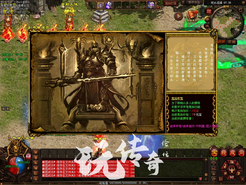 1、玩家务必更新传世2.1.1.64最新客户端进行本游戏!
